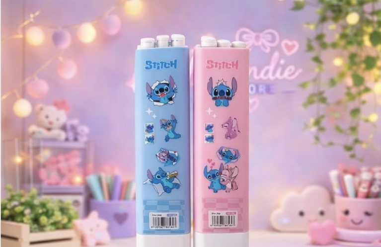 Com um design super fofo do Stitch, ele não é apenas um estojo compacto: dentro dele você encontra três ferramentas essenciais para estudar ou trabalhar.